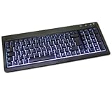 D’accord, le titre du commentaire est un peu facile mais il resume bien la qualite de ce produit. Jouant beaucoup dans l’obscurite, je recherchais un clavier capable de m’eviter d’avoir une lampe allumee en permanence. Celui-ci remplit parfaitement ce rôle pour un prix modere. L’illumination bleue peut eblouir un peu au debut (surtout que je possedais avant cela un clavier à illumination orange beaucoup plus discrète), mais on s’y fait vite, avec le temps je la trouve même du plus bel effet. L’eclairage se coupe/s’active par une simple pression sur un bouton à côte du voyant Majuscule. Autre critère qui peut avoir son importance pour un utilisateur de nuit, le bruit. La frappe est silencieuse et agreable. Le clavier est leger, mais il fait un peu "plastique". C’est d’ailleurs le seul point sur lequel il est en retrait par rapport à des claviers plus chers, j’avoue que le contact des touches aluminium me manque un peu parfois. Mais c’est vraiment pour faire la fine bouche, un produit tout à fait recommande, surtout à ce prix.